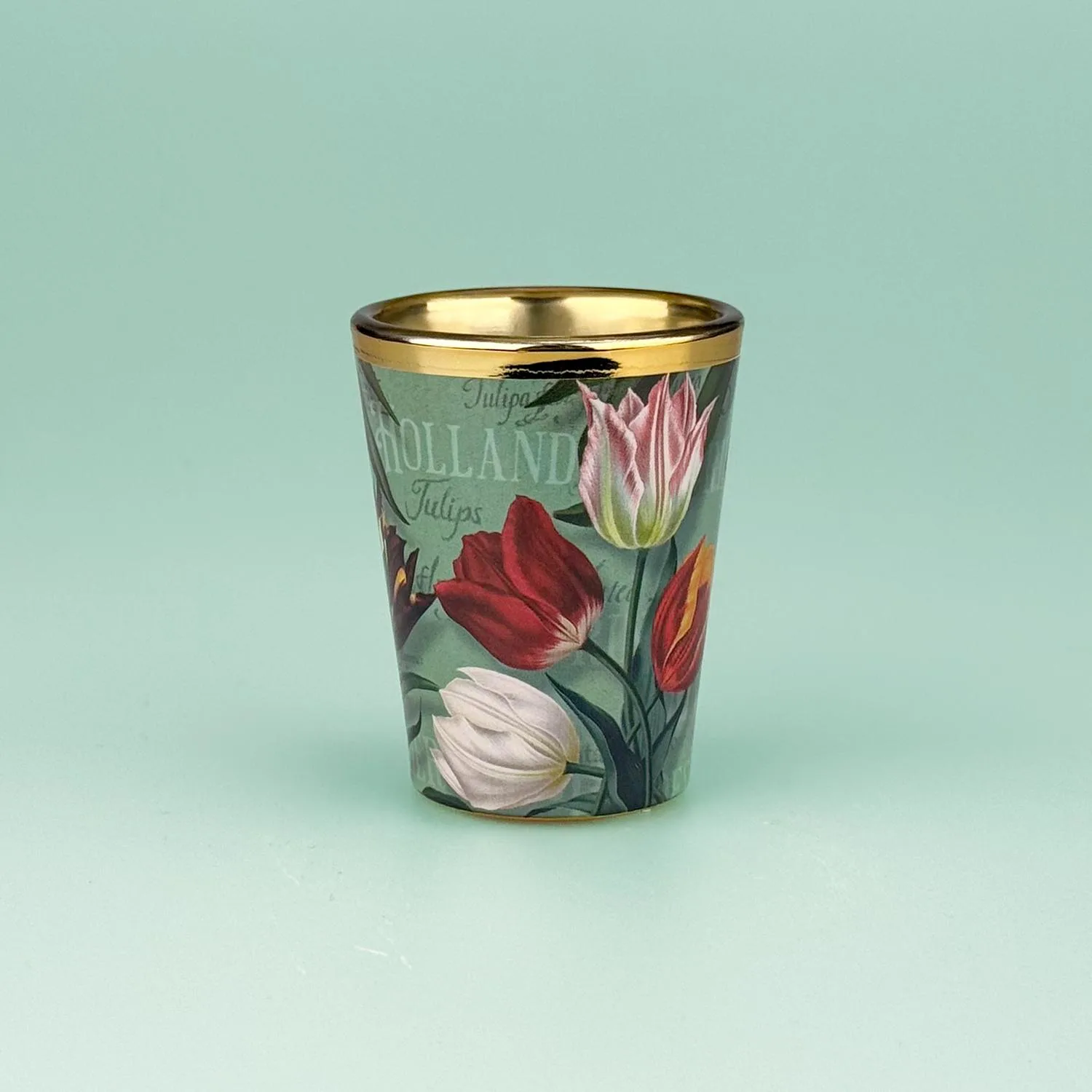 Shotglas met prachtige afbeelding van tulpen met gouden randje
